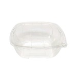 VG PET Tamper Evident Square Bowls are perfect for leaf or pasta salads, cut vegetables, cut fruit, nuts, candies and other specialty foods.. Available in 5” (Small), 7.5” (Medium) and 9” (Large) convenient diameters. These square bowl options are stackable and increase the shelf space efficiency by 25% over round bowls. Crystal clear lids give the consumer a clear view before buying and they are also crack-resistant and spill-proof to ensure safe and stable handling. Black bases available in custom option.